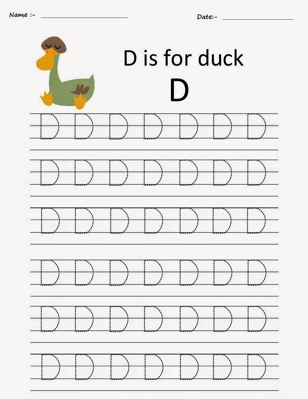 Printable Tracing Worksheets - Alphabet D